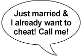 Just Married and already straying! These girls haven't been married for long but they can't stick to one man! While he's out working hard they're on the cheap sex line with you, cheating and doing all the things she should be doing with her husband! Call now and take advantage!